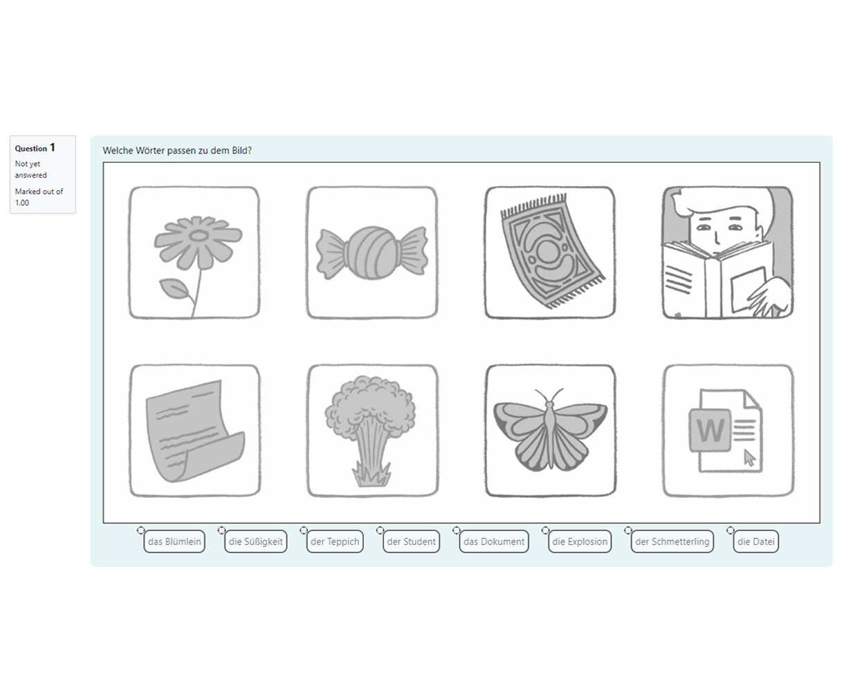 In addition to creating illustrations, I structure and organize the learning materials within Moodle, ensuring a clear and user-friendly progression of content. I also design targeted quiz questions that reinforce the topics covered, helping learners consolidate their knowledge through active recall. The result is a cohesive set of visual and interactive resources—including illustrations, slides, and platform-based activities—that support both independent study and guided instruction.