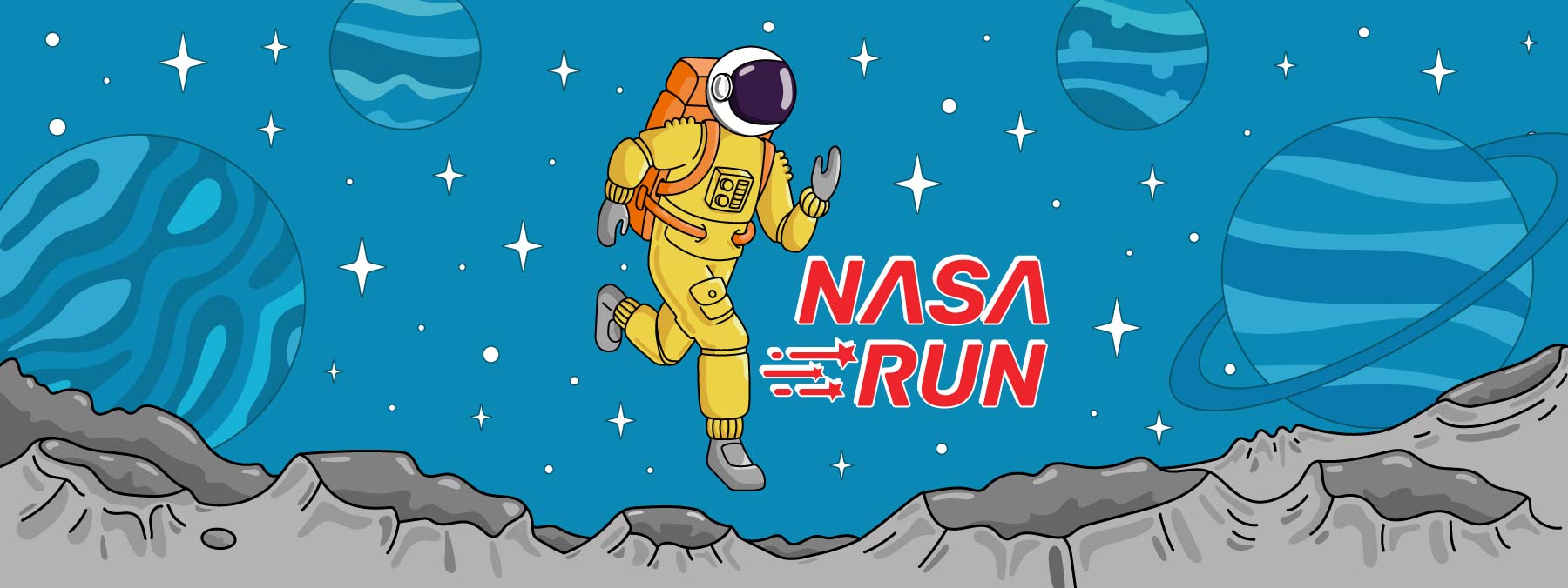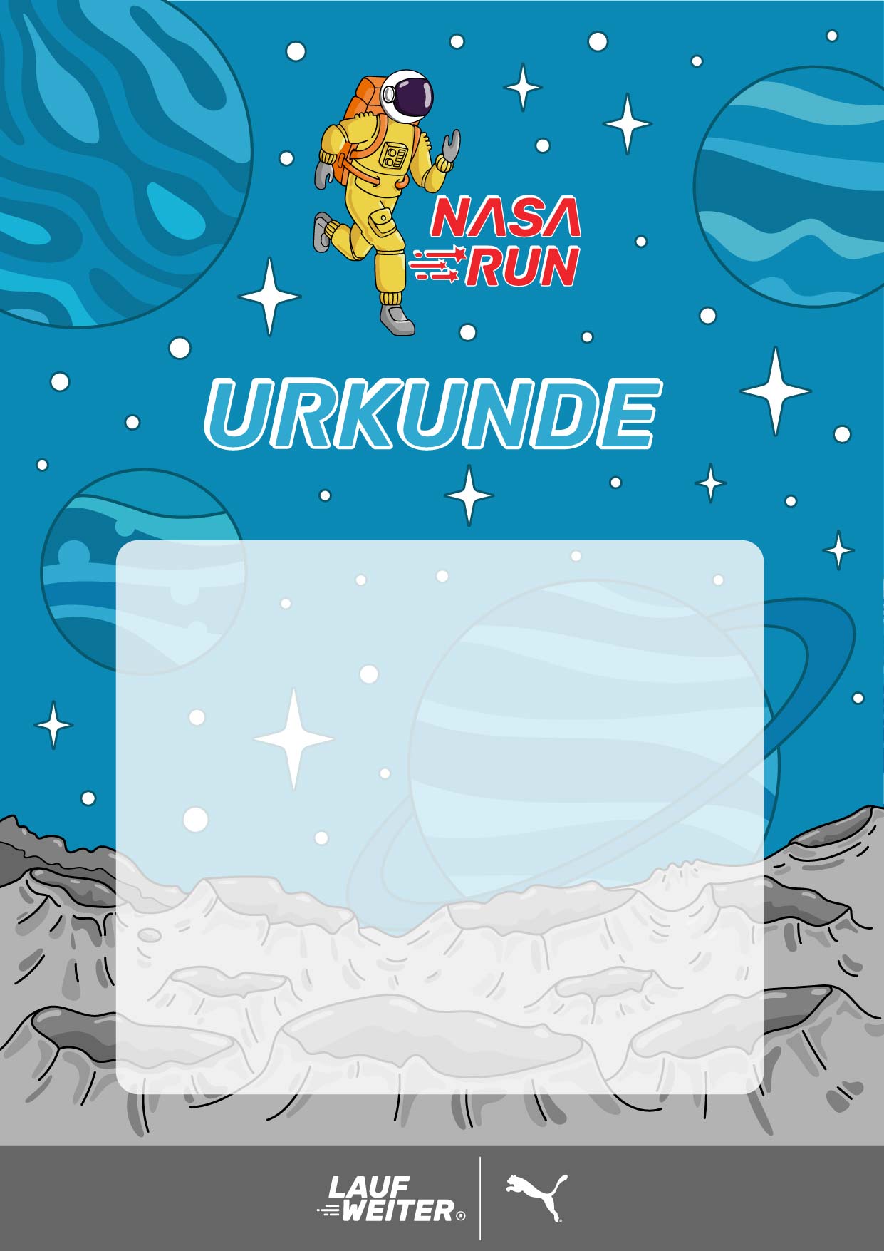 Specifically, I designed the race branding with a NASA-inspired theme, including the medal and related website illustrations. The base designs were created as digital illustrations and later vectorized for versatile use across digital and print media. This work combined creative illustration, branding, and functional design to enhance Lauf Weite’s visual identity and online presence.